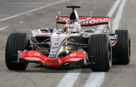 Formula One World Champion Fernando Alonso steers his new McLaren MP4-22 on the track of the Ricardo Tormo circuit, near Valencia, during the first training session January 17, 2007. [Reuters]