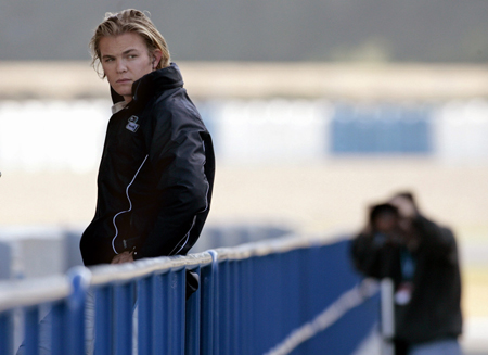 during a free practice session at the Jerez racetrack in southern Spain January