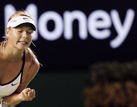 Russia's Maria Sharapova reacts during her match against Italy's Tathiana Garbin at the Australian Open tennis tournament in Melbourne January 20, 2007. [Reuters]