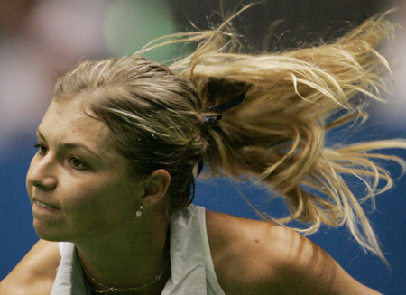 ussia's Maria Kirilenko serves the ball against Israel's Shahar Peer during the Pan Pacific Open tennis tournament in Tokyo January 31, 2007. [Reuters]