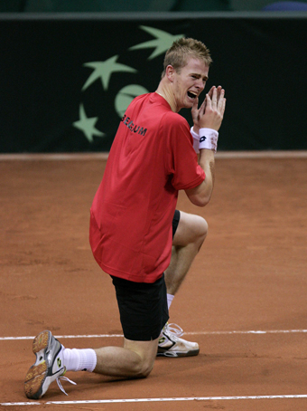 Belgium's Kristof Vliegen celebrates Belgium's victory over Australia