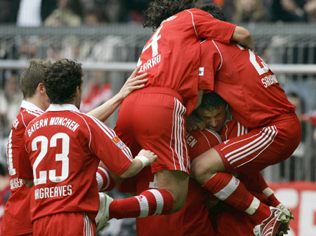 Bayern climbs within 2 of third-place Werder Bremen(AP)Updated: 2007-02-25 08:48 BERLIN - Lukas Podolski and Mark van Bommel scored Saturday to lift struggling Bayern Munich to a 2-1 Bundesliga win against VfL Wolfsburg. Bayern, in fourth place and in danger of missing out on Champions League qualification for the first time in 11 years, moved two points behind third-place Werder Bremen for the league's final spot in the European competition.