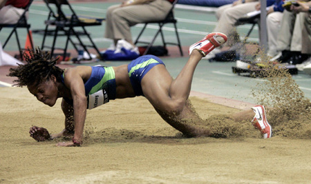 Akiba McKinney competes in the Women's Long Jump at the USA Indoor