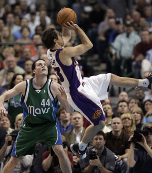 "He's a great finisher," marveled teammate Steve Nash. "That was quite a performance." Stoudemire had 41 points and 10 rebounds, and Nash played like a two-time MVP down the stretch. He scored 10 points in the final minute of regulation, capped by a tying 3-pointer with 2.7 seconds left. He finished with 32 points, 16 assists and eight rebounds. Jerry Stackhouse scored 33 points, his most in three season with Dallas, and Dirk Nowitzki added 30 points, 16 rebounds and six assists. He had eight points and seven rebounds in the third quarter, when the Mavs turned what had been a 16-point deficit into a 15-point lead going into the fourth quarter. Phoenix rallied by opening the fourth by making eight straight shots and 10-of-12. While that set up Nash's great finish, four missed free throws by Dallas, including two by Nowitzki were equally important. The Mavericks remained shaky at the start of overtime, then Jason Terry scored five points in the final 48 second, including a long 3 over Nash with 4.5 seconds to go that forced another period. Phoenix controlled the second OT, but it took a missed 8-footer by Nowitzki as time expired to secure a win that ended Dallas' 23-game home winning streak and tightened the race for the top seed in the Western Conference. "This was a big game. We aren't going to try to downplay it," Stackhouse said. "Those were the best two teams in the West. It was a little disappointing not to get the win but we'll bounce back." The Suns won their sixth straight and 11th in 12 games, moving them within 2 1/2 games of the Mavericks for the best record in the league. "We're 2 1/2 and they have to come to our place, but they might not lose two more the rest of the season," Phoenix coach Mike D'Antoni said. Dallas seemed like a lock for the top spot just a few days ago, when a 17-game winning streak prompted talk of 70 wins for the season. But now the Mavs have dropped consecutive games for the first time since their 0-4 start. This was their first home loss since Dec. 7. "If our guys can string together some stops and if I do a better job of getting them in a better position to make sure they can be more successful, then we can get it turned around," Dallas coach Avery Johnson said. The Suns have 18 games left and the Mavs have 19. The clubs meet again April 1 in Phoenix, with the Dallas leading the season series 2-1. The top seed in the West is worth much more than bragging rights. In addition to the home-court advantage in every round, there's also a better draw; whichever team doesn't get No. 1 likely will be on course to meet the San Antonio Spurs in the second round. No wonder both teams played as if this was more than just another game. "That was a playoff atmosphere," Stoudemire said. "Both teams played with high intensity. Both teams were in it until the end. We definitely wanted to win but we also want to improve." |