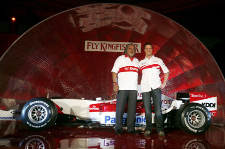 Formula One race car in Mumbai March 20, 2007. Kingfisher Airlines and