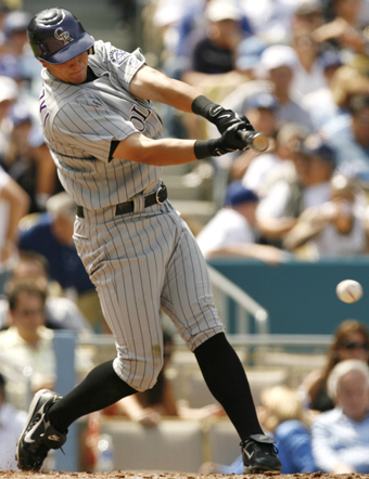 Colorado Rockies Troy Tulowitzki hits an RBI single to score Jeff