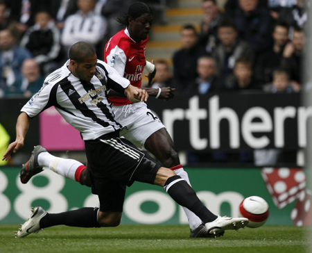 Newcastle United's Oguchi Onyewu (L) fights for the ball with
