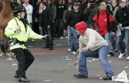 Fans clash outside Old Trafford(Reuters)Updated: 2007-04-11 09:25