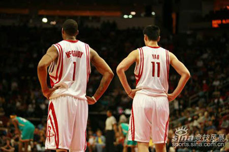 Houston Rockets Tracy McGrady (L) and Yao Ming wait for free throws of New Orleans Hornets during their NBA basketball game Saturday, April 14, 2007, in Houston. The Rockets won 123-112 and Yao Ming scores 30 points. [sina] HOUSTON - Every time the New Orleans Hornets tried to rally in the fourth quarter, Tracy McGrady had the answer. Now, the Houston Rockets are one win away from securing home-court advantage in the first round of the playoffs, while the Hornets' slim postseason hopes are in the hands of other teams. McGrady got 11 of his 25 in the final five minutes and Yao Ming scored 30 points to lead the Rockets to a 123-112 win over New Orleans on Saturday night. The Hornets trailed by 12 early in the final quarter, but cut the Rockets' lead to four twice in the final 2:41. Each time, McGrady answered — with a jumper from the top of the key and then a driving dunk and a free throw with 2:04 left. "I just wanted to put my will on the game," said McGrady, who also had 10 assists. Rafer Alston added 21 points and a season-high 13 assists for the Rockets, who have a two-game lead over Utah in the race for home-court in their first-round playoff series. The Jazz lost 126-98 to Phoenix on Saturday night. "You don't want to squander that opportunity," Alston said of securing home-court. "I know how important it is, because you never know. If it comes down to that last game, you would much rather it be on your court with your fans." McGrady has been preaching to his teammates for two weeks about improving in time for the postseason. "Right now, we have to be playing our best basketball," McGrady said. "I still feel like we're not getting it." David West matched his season high with 33 points and Chris Paul added 20 points and 15 assists for the Hornets, who are all but eliminated from playoff contention. New Orleans started the night two games behind Golden State and the Los Angeles Clippers in the race for the No. 8 playoff spot in the West. Paul is already conceding that New Orleans' season will end this week. "I am very disappointed that we didn't make the playoffs," he said. "We stuck together and never gave up." New Orleans center Tyson Chandler missed his fifth straight game with an injured left big toe. The 7-foot-1 Chandler defended Yao well in two previous matchups this season. Without him, the Hornets struggled to stop the 7-foot-6 Yao, who hit 11 of 16 shots and went 8-for-11 from the free-throw line. Alston said the key on Saturday night was simply delivering the ball to Yao earlier in possessions. "What's been happening, sometimes, is that he's open and we don't get it to him right away," Alston said. "Then they (the defense) are able to push him out farther and that's not the shot we want him to take." McGrady recorded double-digit assists for the 11th time. Houston's 33 assists were a season-high. The Rockets hit 11 of their first 14 shots and led 27-20 after Alston's steal and breakaway layup. Paul had six assists in the opening quarter, but Alston's 3-pointer from the corner with 2.4 seconds left put Houston up 32-30. The Hornets cooled off early in the second quarter and Dikembe Mutombo's tip-in with 8:31 left in the first half started a 14-0 Houston run. Luther Head finished a fast break with a layup and hit two 3-pointers before Yao scored to stretch the Rockets' lead to 53-38. After hitting 13 of 19 shots in the first quarter, New Orleans missed 10 of its first 13 shots in the second. West scored 14 points in the third quarter, but the Rockets hit 13 of their first 19 shots after the break and led 85-78 heading to the fourth. Shane Battier drove for a reverse layup and Head hit another 3-pointer in the first 80 seconds of the fourth quarter to push Houston's lead to 90-78. The Hornets got within five on five separate occasions in the final quarter, then cut it to four twice before McGrady stepped up. "Those are back-breaker plays," Brown said of McGrady's clutch baskets at the end. Battier swished a 3-pointer from the corner with 1:37 left to finally put the Hornets away.