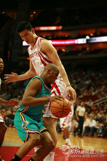 New Orleans Hornets guard Chris Paul (3) tries to drive the ball around Houston Rockets center Yao Ming (11), of China, in the first half of an NBA basketball game Saturday, April 14, 2007, in Houston. [sina]