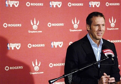 Colangelo acknowledged that the easy part is over in Toronto. "The fact of the matter is there's a lot of work to do," Colangelo said. "We find ourselves division champions and that's probably a surprise to everyone, but that's not good enough. We want to get to the point where we can advance in the playoffs and build things." Colangelo pointed to athleticism and more consistency out of the small forward position as areas for improvement. Colangelo will have less money to spend this summer, and currently is without a draft pick in either round. "It's certainly going to be difficult to take that next step given the limited resources that we have," Colangelo said. "I don't have $10 million in cap space to go out and grab somebody. We've got to give somebody a compelling reason to come here with the midlevel exemption or manufacture something in the form of a sign-and-trade." Trading for a draft pick is also a possibility. Colangelo is already making plans for Bargnani's maturation. "It's likely that he finds himself playing a lot of five next year," Colangelo said. "Whether he starts over Rasho (Nesterovic) is unknown at this point but you're going to see him playing a lot there." |