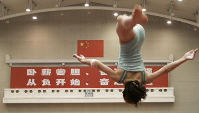 A national gymnast practises during a training session for the 2008 Beijing Olympics at China's General Administration of Sport in Beijing May 15, 2007. [Reuters]