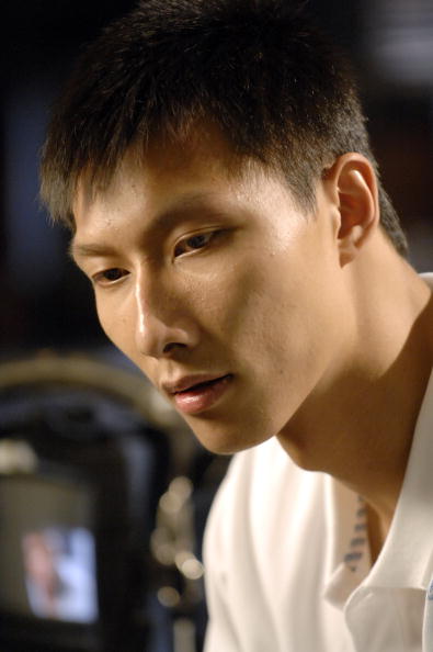 China's NBA prospect Yi Jianlian plays at the seaside during his spare time among the coming NBA draft in June. [sina]