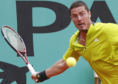 Russia's Marat Safin returns the ball to Spain's Fernando Vicente
