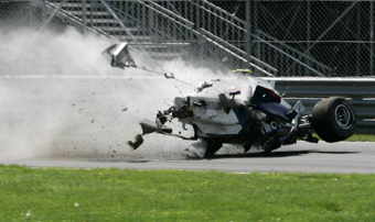 The BMW Sauber driver was flown by helicopter to a hospital in Montreal after