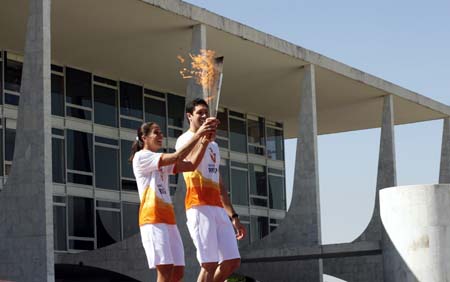 outside Planalto Palace in Brasilia, June 11, 2007. The torch is being carried