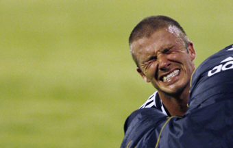 Real Madrid's David Beckham reacts as