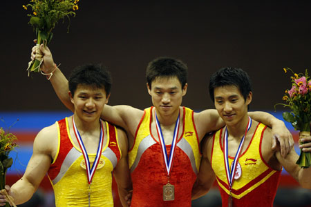 Yang wins all-around at China's gym championship(Xinhua)Updated: 2007-06-14 08:27 SHANGHAI - Yang Wei from Hubei province clinched the men's individual all-around title at Chinese national gymnastics championship here on Tuesday. Yang, 29, the triple world champion at Aarhus gymnastic worlds 2006, edged out Chen Yibing from Tianjin municipality to score a total of 93.40 points.