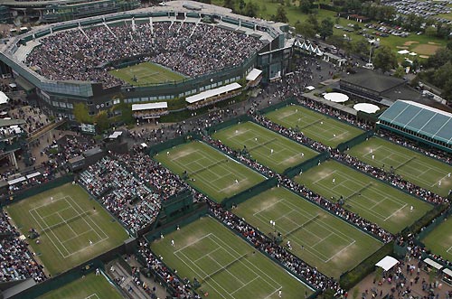 | A aerial view shows the All England Lawn Tennis Club (AELTC) with the