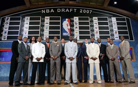 with members of the2007 NBA Draft class Thursday, June 28, 2007, in New York.