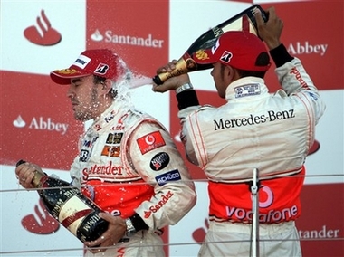 He's still third in the standings to Hamilton. Racing in his home country, Hamilton came in third, finishing in the top three - just like he has in every Formula One race he's been in. Hamilton joined Michael Schumacher and Fernando Alonso as the only drivers with nine straight podium finishes. Schumacher had 19 for Ferrari in 2001-02, and Alonso had 15 for Renault in 2005-06. On Sunday, Raikkonen finished 2.4 seconds ahead of Alonso, putting him third in the standings behind the two McLaren drivers with eight races remaining. Hamilton has 70 points, Alsonso 58 and Raikkonen 52. "It is important we gained some points on the other guys," Raikkonen said. "It is still a long season, but right now it is looking good for me." The Finn turned 59 laps around the 3.2-mile circuit in 1 hour, 21 minutes, 43.074 seconds for his 12th career F1 victory. After starting from the pole, Hamilton finished 39.373 seconds back from Raikkonen, who came over to Ferrari from McLaren this season to replace the retired Schumacher. "We seemed to get the car a bit better for me," he said. "It seems to go a bit better for me." Felipe Massa, fourth in the standings with 51 points, stalled his Ferrari on the grid and had to start from the pits, forcing one lap to be cut from the race. Robert Kubica of BMW-Sauber was fourth for the second straight race since his horrific accident at the Canadian GP in June. Massa was fifth. Both were nearly a minute behind Raikkonen. Alonso went in for his second stop after the 37th lap, enabling Raikkonen to take the lead by not pitting until the 43rd. Last week at the French GP, Raikkonen moved ahead of Massa after the second stop. "I spent two laps overtaking cars, but I don't think the result would have changed," Alonso said. "I am happy with second place," Alonso said. "It's better to win, but today was not possible." Raikkonen decided against trying to overtake Hamilton in the opening laps because of his refueling strategy. "I was able to close the gap fairly easily, but I didn't want to take risk," Raikkonen said. "We knew we would run longer. We just saved fuel." Hamilton wasn't helped at his first pit stop when he started moving, had to stop momentarily, then restarted. "We just lacked the pace today," Hamilton said. "I have had a wicked season so far. I have no complaints to make. Nine podiums in a row, I don't think anyone has done that." |