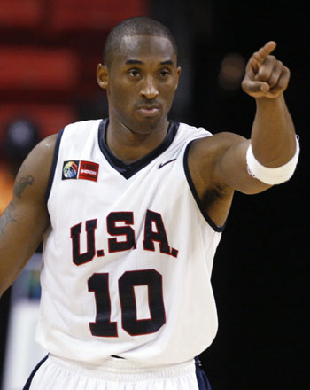 Kobe Bryant of the United States celebrates a score against Puerto Rico during the FIBA Americas regional qualifying basketball tournament to decide two berths for the 2008 Beijing Olympics, in Las Vegas, Nevada, September 2, 2007. [Reuters] |