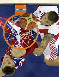 The Russians, who led by only four points after three quarters, stretched their lead to nine early in the fourth after a 3-pointer from Zakhar Pashutin and a layup by Kirilenko. Davor Kus scored 17 points to lead Croatia, which could have earned a place in the quarterfinals with a win. "We woke up and played a beautiful second half," Russia coach David Blatt said. "It was one of our most consistent offensive games." Defending champion Greece reached the quarterfinals by beating Portugal 85-67. Dimosthenis Ntikoudis scored 17 points and pulled down nine rebounds as the Greeks dominated the post, outscoring their opponents 38-18 from inside the foul lane while also converting 10-of-18 from the 3-point line. "We knew it was a very dangerous game and that's why we played under the (net)," forward Michail Kaziouzis said. Joao Santos led Portugal with 17 points. Later Tuesday, Israel faced world champion Spain needing a victory to advance to the quarterfinals. A Spanish win would send Croatia to the next round. Russia's defense in the second half forced some erratic shooting and several turnovers by Croatia, which played without injured guard Marko Popovic. "We lost our concentration, made many mistakes and conceded too many fast-break points," Croatia coach Jasmin Repesa said. "These are strong teams and if you lose your concentration against them, they will punish you." Led by center Mario Kasun, Croatia led 21-19 by the end of the opening period, but repeatedly turned the ball over _ commited six of its 19 in the second quarter _ to keep Russia close. Kus hit a 3-pointer to give Croatia a 39-32 lead late in the half, but Russia rallied and Kirilenko's flying dunk with seconds to play cut the deficit to 42-41. Russia jumped ahead 50-47 in the third, but Kasun put Croatia back in front 54-53 before the Russians took control for good. Greece guard Dimitris Diamantidis was 3-for-4 from behind the 3-point line and finished with 13 points, while Vassilis Spanoulis added 10. Greece, inspired by the presence of former great Nick Galis in the stands, next will face the loser of Wednesday's game between Lithuania and Slovenia. "We are not afraid of anyone," Spanoulis said. "Greece has proved in the past that (it) can come through in the most crucial games and to be great you have to win big games." Portugal led 17-16 after the first quarter, but the Greeks capitalized on turnovers and moved ahead 45-34 by halftime. "We've been a surprise and against Greece today we kept dreaming," Portugal forward Elvis Evora said. "We go home with our heads up, very proud of ourselves." The second round ends Wednesday with Germany playing Italy for the final spot in the quarterfinals from Group F. Also, France faces Turkey.