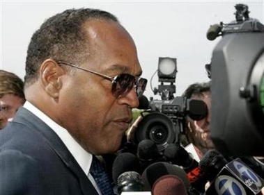 Simpson was arrested Sunday in connection with an alleged robbery of sports memorabilia from a Las Vegas hotel room. Simpson said he was taking back souvenirs that belonged to him. He was booked on suspicion of two counts of assault with a deadly weapon, two counts of robbery with a deadly weapon, conspiracy to commit burglary and burglary with a firearm, according to The Los Angeles Times. Simpson, 60, was in custody at the Clark County Detention Center in Las Vegas on Sunday night after a judge ordered that he be held without bail, pending an arraignment set for Thursday. Simpson said he and his companions went to the room at the Palace Station Hotel & Casino on Thursday night to reclaim personal photos -- some snapped by his slain ex-wife, Nicole Brown Simpson -- and football souvenirs that he said had been stolen by a former agent. He claimed that no one in his group was armed. But police said they found two guns after the incident and that members of Simpson's entourage had pointed weapons at people in the room. Simpson, suspected in the slayings of his ex-wife, Nicole Brown Simpson and her boy friend Ron Goldman in 1994, was acquitted of criminal murder charges but was found liable for their deaths in civil lawsuits |
