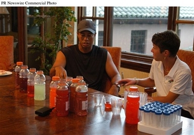 Tiger Woods meets with Kathleen Da Cunha, Gatorade vice president of product development, to explore flavor options for the new Gatorade Tiger subline to be launched in 2008. [Agencies] |