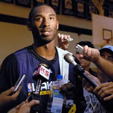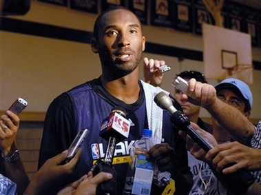 Los Angeles Lakers' Kobe Bryant speaks with the media after a team basketball practice at Iolani High School in Honolulu in this Oct. 2, 2007 file photo. [Agencies]