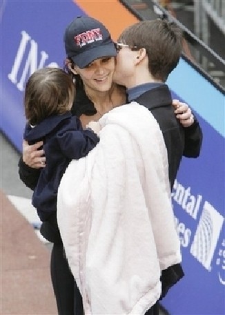 Tom Cruise (R) and his child Suri greet Katie Holmes as she finishes the New York City Marathon in New York, Sunday, November 4, 2007. [Agencies]