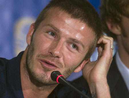 David Beckham of the Los Angeles Galaxy answers questions during a news conference in Vancouver, British Columbia November 6, 2007. The team will play the Vancouver Whitecaps in an exhibition soccer match on Wednesday. [Agencies]