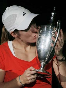 Tired, bothered by a bad foot, and suffering from the labours of an intense season against a relatively fresh opponent, Henin's 5-7, 7-5, 6-4 win over the comeback Russian took fully three hours and 25 minutes, the longest final since the event switched to the best of three sets in 1999. It also made Henin the first woman ever to have earned more than five million dollars prize money in one season; the first in ten years, since Martina Hingis, to win ten titles in a season; and the first in 18 years, since Steffi Graf, to remain unbeaten post-Wimbledon. Henin, who has recovered from a marital breakdown and ridden the emotion of a family reunion after seven years' estrangement, also achieved a personal best of 25 consecutive wins - the best on the tour in seven years. "It's the last day of the season, the last match and 25 wins was great motivation. It's been fantastic and emotional and I just wanted to enjoy this last moment," said Henin, who rushed straight up into the stands to celebrate with family and back-up team. It was nevertheless a notable effort too by Sharapova - not having achieved a win since the US Open in September, struggling with a long-term shoulder problem, and now coming so close to the title. "I wasn't sure I would play here and I only came here hoping to get as many matches as possible, and this happens. It's more than I expected," she said. The first set, lasting fully an hour and a quarter, and full of positive and varied rallies, had a suitably dramatic finish. Three times Henin had chances to take it to a tie-breaker, and seven times she saved points to lose the set, eventually losing it on set point number eight when she top-edged a forehand under pressure. Once it looked as though she had made it to 6-6, when she delivered a first serve down the middle and had it called an ace, game to Henin. But Sharapova appealed to Hawkeye which, surprisingly, showed it as three or four inches out, whereupon Henin delivered a double fault. She also missed three chances to break serve at the opening of the second set, which might have shifted the momentum of the match. But by then Sharapova's adrenaline was running high, as she began to sense a notable victory. Sharapova had begun by serving moderately, delivering a double fault in the first game, and dropping her second service game. Before the match she had clearly still been edgy about her shoulder. Told that she was serving well and hence asked if it was now 100 percent, she snapped back: "I don't talk in percentages." It suggested it still was not fully fit. Nevertheless as her shoulder warmed to the task and after she had broken back she served more solidly, but often conservatively, sometimes kick-spinning the ball in rather than risking the big boomers. The second set was scarcely much shorter. Sharapova looked as though she were edging towards the finish line after saving three break points in the opening game and going 3-2, 4-3 up with the advantage of serving first, Henin apparently tiring. But Henin is a good fighter as well as a great stroke-maker. Twice she broke Sharapova, whose delivery began to look a little vulnerable again, and at the second attempt converted it, closing it out for one set all with a flourish. After two hours and 20 minutes that took some doing. Henin began to sense more strongly that she could win when Sharapova's serve began failed her in the third game of the third set, putting her 1-2 down after two double faults sandwiched a successful Hawkeye challenge by Henin. Soon it was 1-3 and although the former number one pulled that break of serve back, she double faulted again to go 3-4 down. This time Henin held tenaciously held on to it, and as both players tired, broke again to close it out. "In the third set it was mentally and physically tough," said Henin. "We were both dead. But what a way to finish the season. I feel it's a dream for me to do this after what happened this season. But I had a lot of people around me to support me and I grew up." |