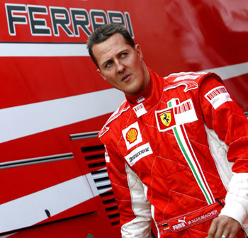 Michael Schumacher is seen in the paddock during a training session at Catalunya's racetrack in Montmelo, near Barcelona, November 14, 2007. Schumacher came out of retirement to test Ferrari's title-winning 2007 Formula One car in Barcelona. [Agencies]