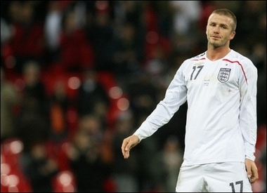 England footballer David Beckham gestures after his team lost 3-2 to Croatia in a Group E Euro 2008 Qualifying game at Wembley, in north London, on 21 November. Beckham has vowed to continue his quest to win a century of caps for England under whoever succeeds Steve McClaren as head coach. [Agencies]