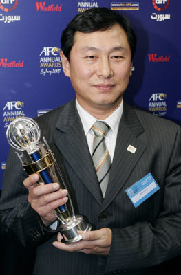 Updated: 2007-11-28 21:30 ![]() China Football Association Vice President Nan Yong poses after China won the Asian Football Federation (AFC) Association of the Year at the AFC Annual Awards in Sydney November 28, 2007. [Agencies] |