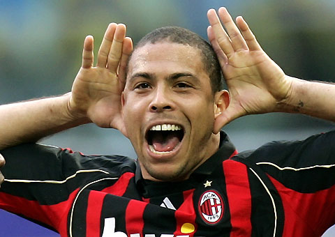 AC Milan's Ronaldo celebrates after scoring against Inter Milan during their Italian Serie A soccer match at San Siro stadium in Milan March 11, 2007. [Agencies]