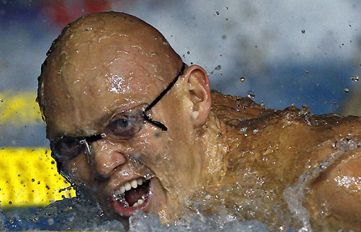 Michael Klim of Australia's men's 4 x 100m medley relay team competes in the swimming heat at the World Aquatics Championship in Melbourne April 1, 2007. [Agencies]