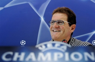 Real Madrid coach Fabio Capello laughs during a press conference after a training session in Madrid, in this Monday, Sept. 25, 2006 file photo. Capello, the former Real Madrid and AC Milan coach, is the new favourite to become England national soccer team manager after Jose Mourinho pulled out of contention. [Agencies]