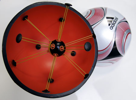 The new chip-in-ball model is displayed during a news conference in Yokohama, south of Tokyo December 13, 2007. Adidas and Cairos Technologies jointly presented the new goal line technology and the Adidas intelligent ball on Wednesday tested at the FIFA Club World Cup in Japan from December 7 to 16, 2007. [Agencies]