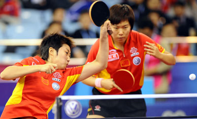 Li, just 19 years old, also took the women's doubles trophy after partnering Guo Yue to beat South Korea's defensive pair Kim Kyung Ah and Park Mi Young in full sets, while Wang Nan, 29, was ousted in as early as the second round by teammate Guo Yan, a former World Cup winner after beating the well-recognized prodigy Zhang Yining in the final.