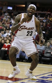 Cleveland Cavaliers LeBron James reacts after being fouled and missing a shot against the Milwaukee Bucks in the first half of their NBA game in Cleveland December 17, 2007.  [Agencies]