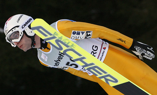 Austria's Wolfgang Loitzl soars through the air during the first jump of the individual large hill ski jumping World Cup in Engelberg December 23, 2007. Switzerland's Andreas Kuettel won the competition ahead of Austria's Gregor Schlierenzauer and third placed Austria's Thomas Morgenstern. [Agencies]