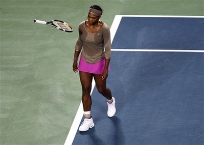 Serena Williams of the United States bounces her racquet off the court during her women's singles match against Alicia Molik of Australia at the Hopman Cup in Perth, Australia Thursday, Jan. 3, 2008. Williams won the match 6-2, 7-6. [Agencies]