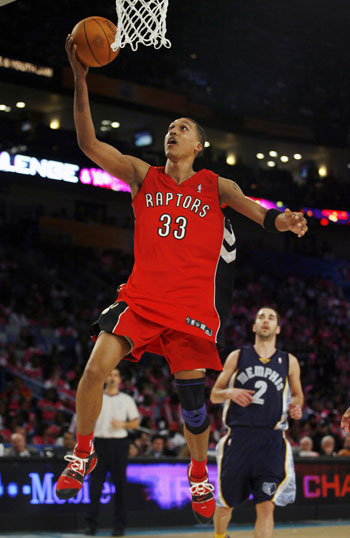 Jamario Moon of the Toronto Raptors goes to the basket during the NBA Rookie Challenge game part of the National Basketball Association All-Star weekend in New Orleans, Louisiana February 15, 2008. [Agencies]