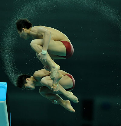 Germany Patrick Hausding and Sascha Klein took the silver at 466.74, while Thomas Daley and Blake Aldridge brought the Great Britain a bronze at 446.07. Lin and Huo, unbeatable in the World Series last year, said, "We did well in synchronizing. But there were still some mistakes in our diving, so we still need to improve ourselves." "I really felt nervous to compete at home and diving in the Olympic venue also gave me some stress," Lin added. "We are quite happy to win the silver," said Klein. "We finished third in the preliminaries and second in the final, and we are satisfied with the results." Blake Aldridge and Thomas Daley of Britain finished third at 446.07. "Today is fantastic," said Daley. "To get the bronze medal is overwhelming. We were just ninth in the preliminaries, but we really did a good job in the final. I hope I can win a gold in Beijing Olympic Games." Australian duo Robert Newbery and Mathew Helm, bronze medalists in the event in the Athens Olympic Games, only took the fifth. Newbery and Helm once retired after the 2006 Commonwealth Games in Melbourne but came back in mid-2007. They have teamed up since the 2000 Olympic Games in Sydney. "Around Melbourne 2007, I knew that I could still dive," said Newbery. "I also thought that Beijing 2008 would be my last chance to go to the Olympic Games and I would regret it if I didn't come back and try." |