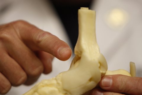 Houston Rockets team doctor Tom Clanton explains star center Yao Ming's affected part by pointing to a foot and ankle model at a press conference announcing Yao would not play for the rest of the NBA basketball season due to a stress fracture in his left foot Tuesday, Feb. 26, 2008 in Houston. [Sina]