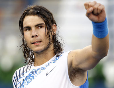 Spain's Rafael Nadal reacts after winning his match against Germany's Philipp Kohlschreiber at the ATP Dubai Tennis Championships, March 4, 2008. [Agencies]