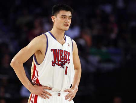 Houston Rockets' Yao Ming stands during the NBA All-Star basketball game in New Orleans, Louisiana Feb. 17, 2008. [Agencies]