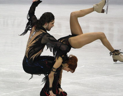 Russia's Jana Khokhlova and Sergei Novitski perform during the ice dancing free dance programme at the World Figure Skating Championships in Gothenburg March 21, 2008. [Agencies]